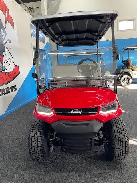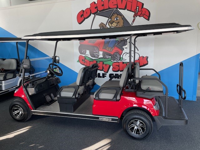 This 2024 Advanced EV Advent “CLICK” 6 passenger golf cart is street legal with headlights, taillights, brake lights, turn signals, horn, and seatbelts.